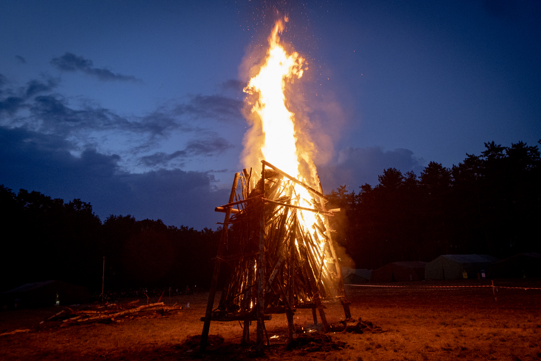 De zwarte doodVoor scene: Hoogpriester gaat samen met snaveldokters de tenten binnen om ratten uit te zetten en nog een laatste stokje te steken voor de strijd. Koornaard is geteisterd door een plaag: ‘De pest’. Hij ziet enkele protestanten staan, en gaat er naartoe. Karel spreekt ze aan en ziet dat enkele van hen er heel ziek uitzien/liggen (de plaag dokter staat er bij). De plaag dokter vertelt over de pest, een ziekte die hij in andere dorpjes al eerder had gezien en weet niet hoe hij het moet aanpakken. Karel herkent de pest uit zijn geschiedenisboeken en weet hoe hij dit moet aanpakken. Hij vertelt de dokter dat hij wil helpen en weet hoe hij een einde moet maken aan de pest. Zo vertelt hij dat de oorzaak van de pest komt door de grote aanwezigheid van de ratten in het dorp. Ook speelt goede hygiëne een belangrijke rol. Hij zegt dat je sowieso elke dag een zuivere onderbroek moet aandoen. Hierop reageren de bewoners verbaasd… ‘Wat is een onderbroek? (of kunne ze hun bruine onderbroek tonen) *Er komt een rat over het podium gelopen. Verder vertelt Karel dat je de ratten kunt vangen. Hiervoor heb je een rattenval nodig. De inwoners van het dorp weten nog niets over deze uitvindingen. Spel om ratten te verdelgenDe laatste strijdWanneer een loopjongen het kamp van de protestanten binnenstormt, heeft hij een dringende boodschap bij zich. Vol paniek weet hij Karel en de protestanten op de hoogte te brengen dat de Orde een leger klaar heeft om het kamp aan te vallen en hen voorgoed uit te roeien. Het is nu aan Karel en de leden om het kamp voor te bereiden op deze veldslag. Om het kamp voor te bereiden op deze epische strijd zullen de leden het kamp en het leger van de protestanten versterken. De toppers zullen armour maken, aan de hand van zoveel mogelijk kledingstukken aan te doen. De rakkers zullen speren maken, ze slijpen takken en darten daarna met hun geslepen takken. De aspi’s zullen een kip (of twee) moeten vangen, dit omdat we veren nodig hebben voor onze pijlen. De kabouters zullen pijl en boog schieten om het leger te trainen. De speelclub zal moeten tonen dat ze waardige strijders zijn. Ze zullen het uitvechten op krukken tegen elkaar . Tot slot zullen de kerels een katapult moeten maken. Na de voorbereidingen maken de protestanten zich klaar en zingen ze hun krijgslied. Na alle voorbereidingen is Karel klaar voor de strijd. De Orde valt binnen en een hels gevecht tussen beide groepen breekt uit. De strijd is voorbij. De Orde is verslagen, het kamp Koornaard gehavend, maar vrij. Terwijl de zon ondergaat, verzamelen de leden en protestanten zich rond een reusachtig kampvuur, het grootste dat Koornaard ooit heeft gezien. Vlammen verlichten hun gezichten terwijl ze zingen, lachen en huilen van opluchting Karel staat aan de rand van het vuur, het amulet in zijn hand. Hij weet dat zijn tijd hier bijna om is. Dan, net buiten het licht van het vuur, verschijnt plots een silhouet… een man met een lange mantel en een staf. Het is de tovenaar! Hij stapt langzaam naar voren, het vuur weerspiegelt in zijn ogen. “Gij hebt goed gedaan, Karelus” zegt hij met een knik. “De balans is hersteld. Uw taak hier is volbracht, Messiah.” Karel loopt naar hem toe. “Waarom hebt ge mij hier gebracht?” Merlijn glimlacht. “Omdat alleen iemand die de toekomst kent, het verleden kan veranderen. Als jij nooit was gekomen heerste de orde voor de rest van de eeuwigheid over de wereld. En nu is het tijd om terug te keren.” De tovenaar heft zijn staf, en het amulet in Karels hand begint fel te gloeien. De vlammen van het kampvuur lijken zich naar hem toe te buigen, als een draaikolk van vuur en magie. Karel kijkt naar de kring van mensen rond het vuur — vrienden, strijders, kinderen die in hem geloofden. Hij zegt “Dank jullie. Voor alles. Ik vergeet dit nooit.” Dan spreekt Merlijn de spreuk uit: “Vanescas, Karelus, per magica verba; Maximus in braccas fecit!”Het vuur laait op in een verblindende lichtflits. Karel wordt meegevoerd in een draaikolk van rook, warmte en licht… Het lukt, Karel verdwijnt… zijn amulet scheen als nooit ervoor. … en belandt terug midden in de goochelshow, alsof er niets gebeurd is. The end |
